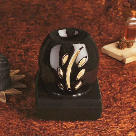 RAJ@ROYAL® Black Oval Shaped Ceramic Electric Aroma Diffuser Essential Oil Burner Air Freshener for Home SPA Office Decor (15 x 12 cm, Black)