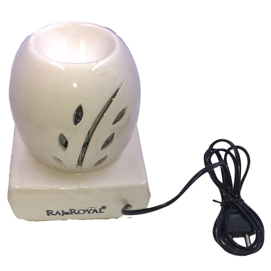RAJ@ROYAL® White Oval Shaped Ceramic Electric Aroma Diffuser Essential Oil Burner Air Freshener for Home SPA Office Decor (15 x 12 cm, White)
