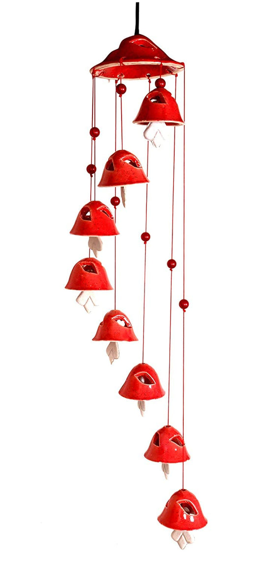 RAJ@ROYAL® Handcrafted Ceramic Wind Chime for Living Room Balcony Handmade Decorative for Garden Home Office Shop Decoration Gift for Friends and Family 8 Bells Red