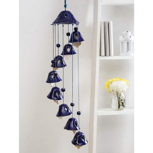 Raj Royal Handmade Ceramic Melodious Positive Sound Energy Wind Chimes Bell (8 Bells) Shape for Office Garden Bedroom Balcony Outdoor Home Decor - (65 cm, Blue)