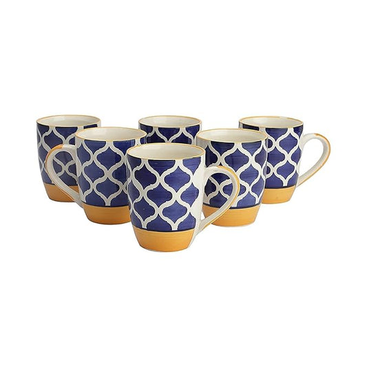 Raj Rayol Handcrafted Microwave Safe Pure Ceramic Coffee Mug/Tea Cup Set with Handle Set of 6 (Blue & Yellow)