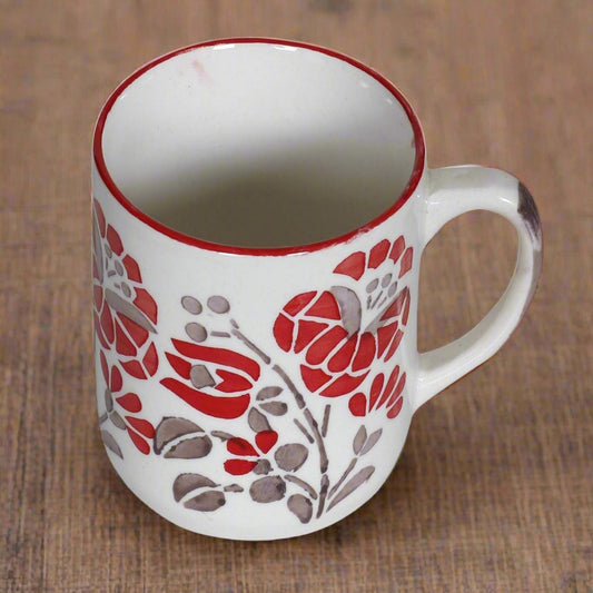 Raj Royal Ceramic Flower Printed Design Microwave safe Tea Cup/Coffee Mug Cup with Handle (Set of 6, Capacity - 300 ml)