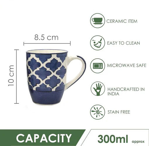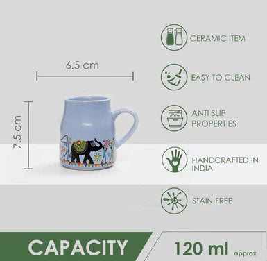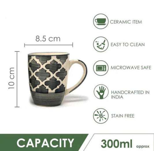 SaleRaj Royal Handcrafted Ceramic Line Printed Tea Cup/Coffee Mugs (Set of 6pcs, Multi)