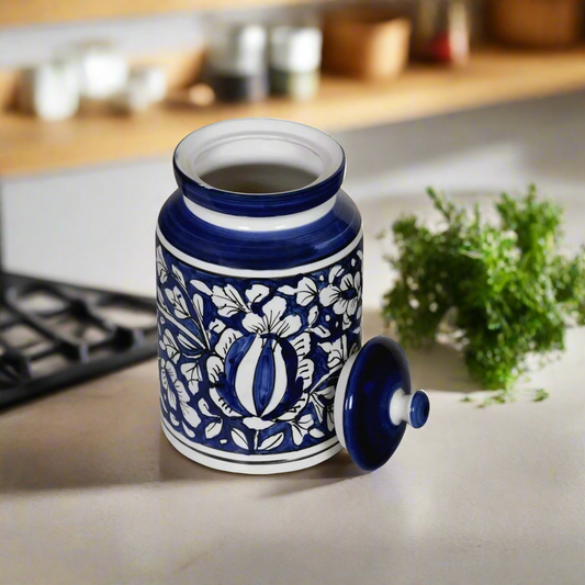 RAJ ROYAL Ceramic Storage Container Jar with Lid Storage Canister (Blue) -1.25 kg