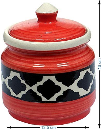 RAJ ROYAL Ceramic Pottery Hand Painted Cornichon Crockery Pulses Dry Fruit Tea Pickle Coffee Multipurpose Food Storage Jar Container with Lid For Kitchen Home