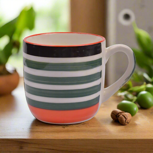 SaleRaj Royal Handcrafted Ceramic Line Printed Tea Cup/Coffee Mugs (Set of 6pcs, Multi)