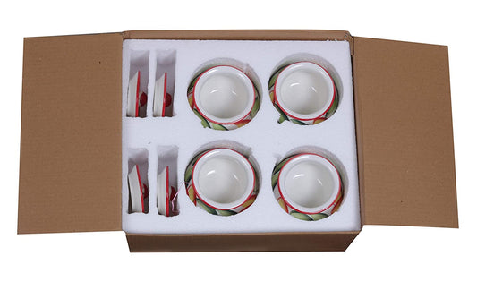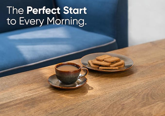 SaleRaj Royal Stylish Print Ceramic Tea/Coffee Cups Set of 6 with 2 Snack Bowl (350ML)