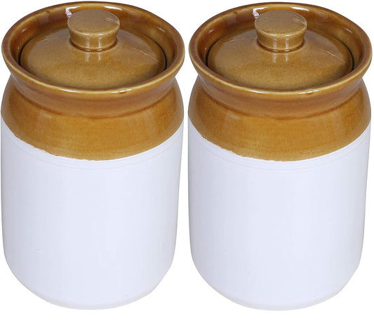 RAJ ROYAL Ceramic Food Storage Container Dahi Handi with lid Set of 4 Storage Canister (Multicolour)