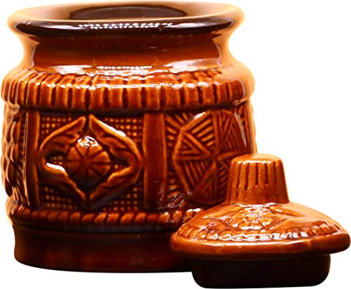 RAJ ROYAL Ceramic Serving Pot Modeling Clay Grey Pottery Handmade Painted Cornichon Crockery Pulses Rice Dry Fruit Pickle Storage Jar For Dining Table Kitchen Set Storage Canister (White, 750 Grams)