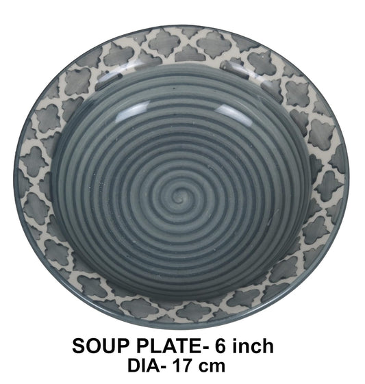 RAJ ROYAL Ceramic Hand-Painted Microwave & Oven Safe Pasta Plate| Soup Plate | Snack Plates - Set of 4 Plates (6 Inch, Seashell Grey)