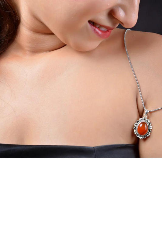 SaleRAJ ROYAL Natural Carnelian Pendant in 925 Sterling Silver