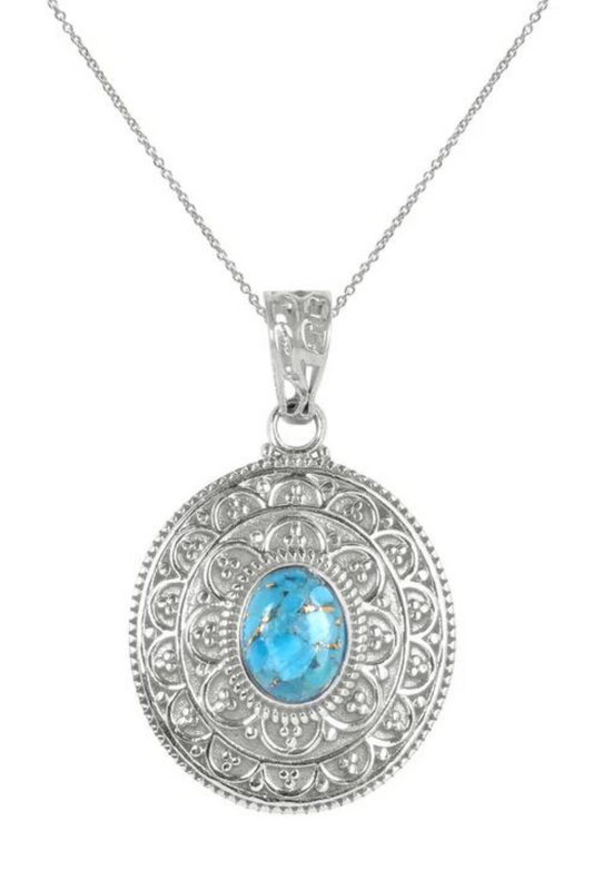 SaleRAJ ROYAL Natural Turquoise Pendant in 925 Sterling Silver