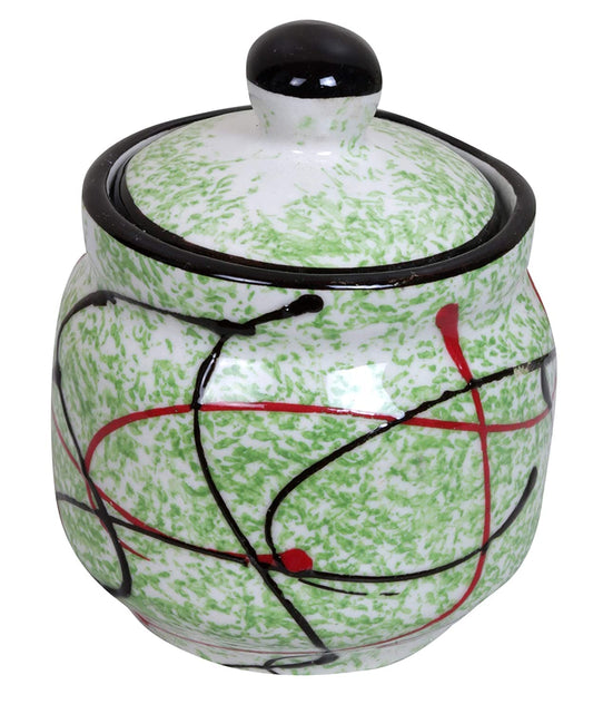 RAJ@ROYAL® Ceramic Storage Container Cainster Barni Jar with Lid & Tray for pickle Chutney Tea Sugar Salt Spices - 200 Grams storage each Set of 4, Green