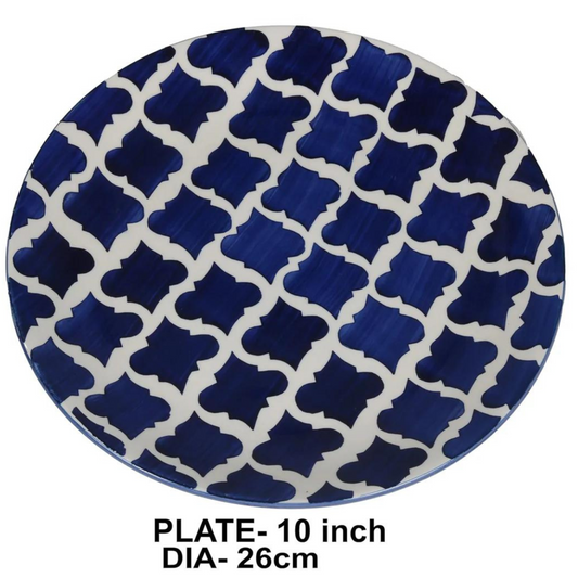 RAJ ROYAL Multipurpose Microwave Safe Ceramic Hand Painted Dinner Plates 10 Inch Dinnerware Serving Plate Set of 2 Plates (Seashell Blue)