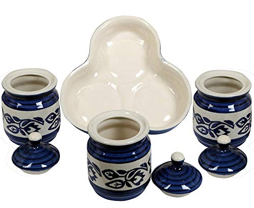 RAJ ROYAL Ceramic Food Storage Container Jar for Pickle with Lid & Tray, Handmade Barni Storage Container For Chutney, Dining Table, Salt, Masala