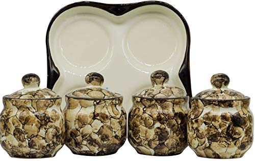 RAJ ROYAL Ceramic Food Storage Container with Lid & Tray - Set of 4-Storage Canister,Color – Luster Brown , Cornichon Jar - Size: Height 2.9" x Diameter : 2.9", Capacity-200 GM Each