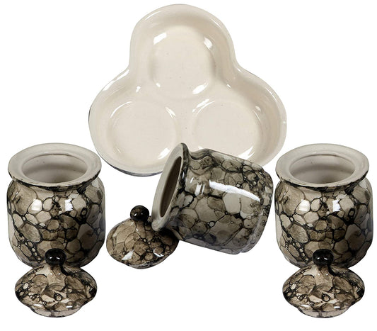 RAJ ROYAL Ceramic Storage Container Cainster Barni Jar with Lid & Tray. for pickle Chutney Tea Sugar Salt Spices - 200 Grams storage each, Set of 3,
