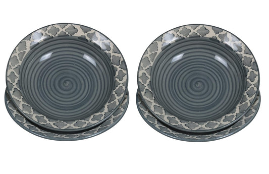 RAJ ROYAL Ceramic Hand-Painted Microwave & Oven Safe Pasta Plate| Soup Plate | Snack Plates - Set of 4 Plates (7 Inch, Seashell Grey)