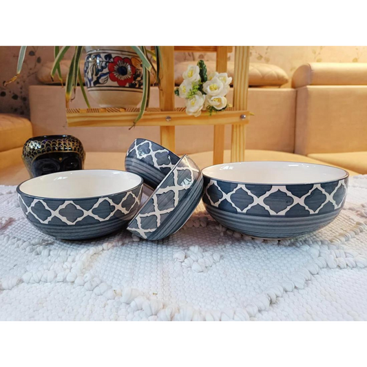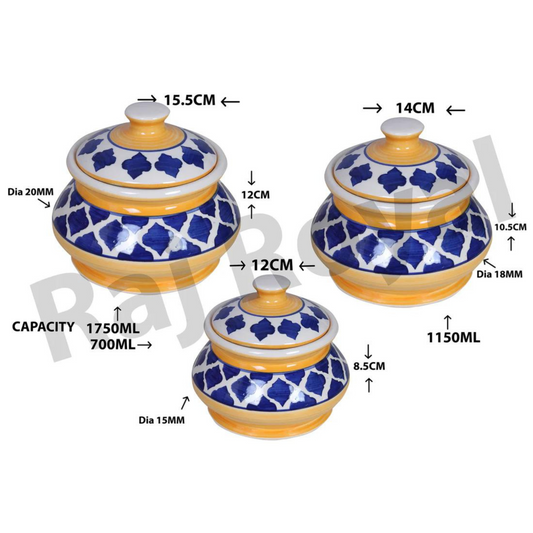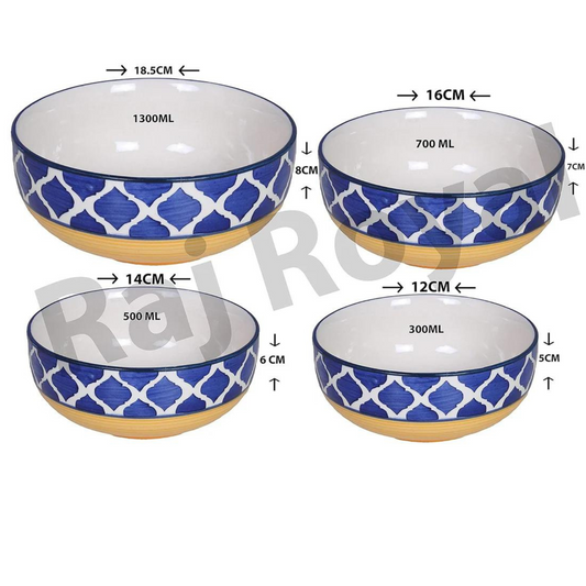Raj Royal Ceramic Dinning Serving /Snack/ Mixing /Vegetable / Cereal / Soup / Salad / Tableware / Pudding Multipurpose / Desert / Food Storage Container / Hand Painted Blue Bail Bowl Set of 4 /Microwave Safe/(1300 ML, 700 ML, 500 ML, 300 ML)