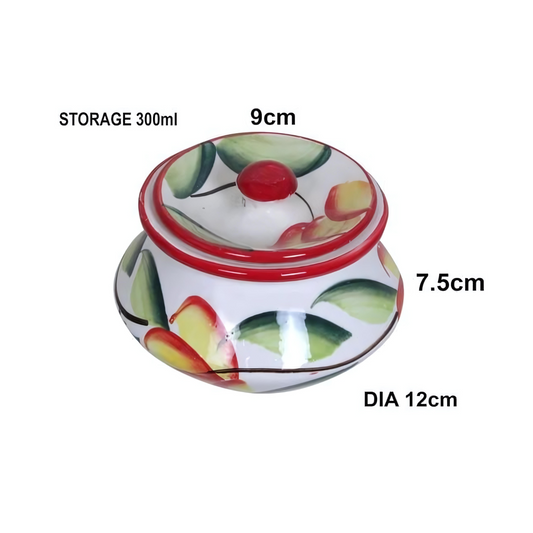 RAJ ROYAL Hand Painted Ceramic Cornichon Storage Jar for Pickle Dry Items Pottery Dry Food Storage Container Donga with Lid For Kitchen Home Hotel Restaurant Handi (15x15x14.5 cm_2250 ML)